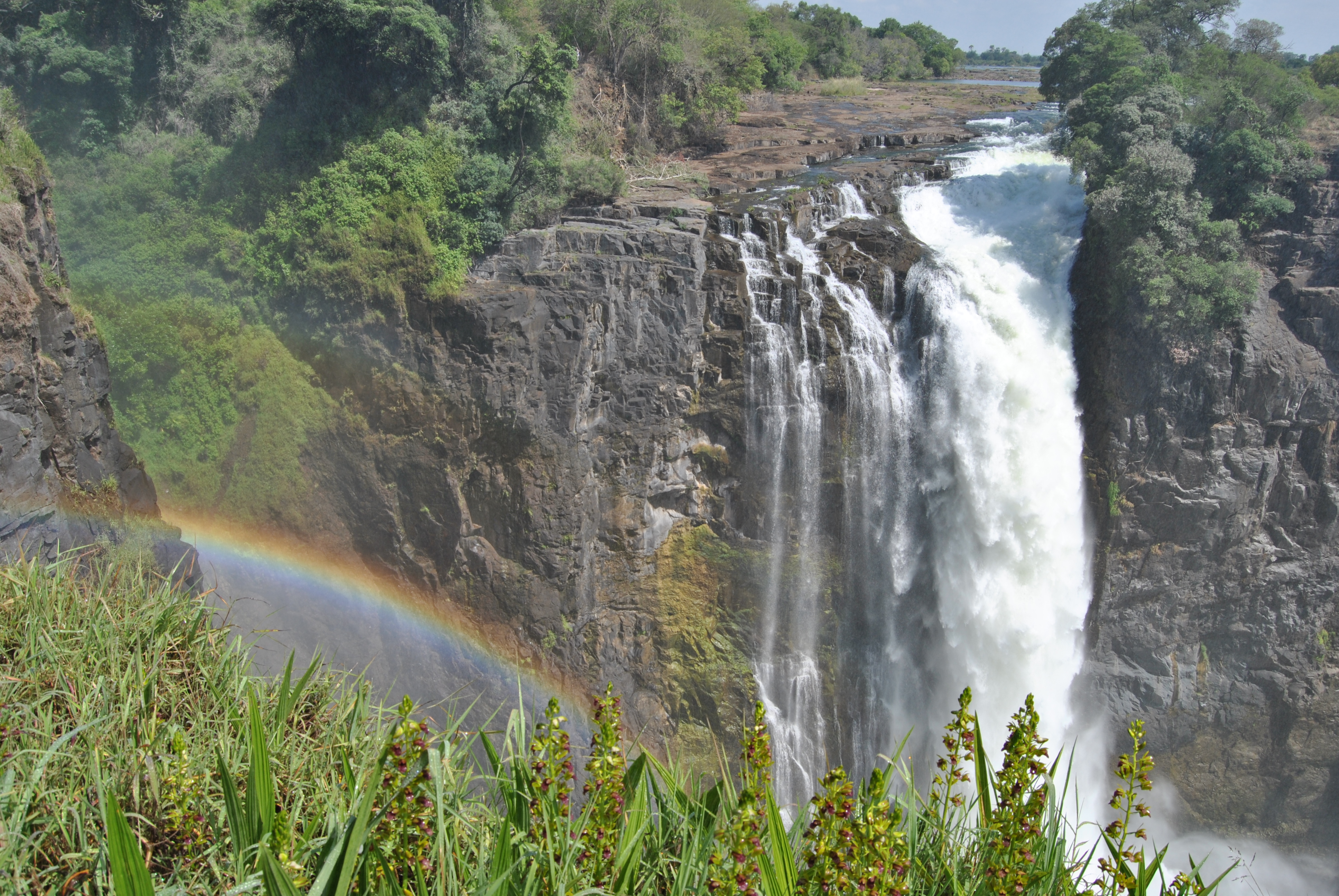 Am letzten Tag in Kasane sind wir dann noch einen Tag nach Simbabwe zu den Victoriafällen gefahren. Sie sind ein breiter Wasserfall des Sambesi und gehören zum Weltnaturerbe der UNESCO. Aber seht selbst: